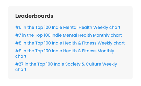 Thank you all for your support of Sweet Tea Ethics! We are currently featured on several charts on Goodpods. We are currently sitting at #6 in the Top 100 Indie Mental Health weekly chart!