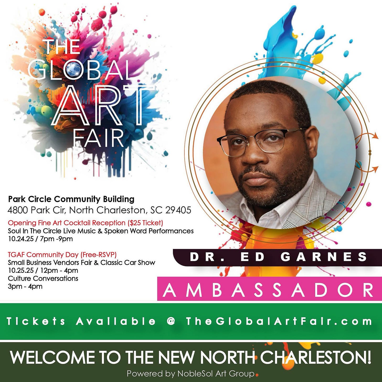 Dr. Ed Garnes serves as an Ambassador for Okeeba Jubalo Fine Art Gallery and The Global Art Fair (TGAF), powered by NobleSol Art Group. TGAF is a multidisciplinary and multicultural art fair hosted annually within the City of North Charleston. Founded by arts industry leader, pioneer, and Charleston native Okeeba Jubalo as a means to showcase a myriad of low-country and south-eastern creatives who deserve a world-class platform.
